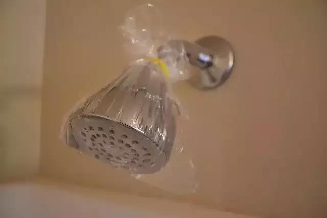 要清潔淋浴噴頭其實(shí)很簡單,拿一個(gè)塑料袋,倒入蒸餾水白醋,用橡皮筋固定在淋浴頭上,浸泡一小時(shí)后用干凈濕布擦干即可。