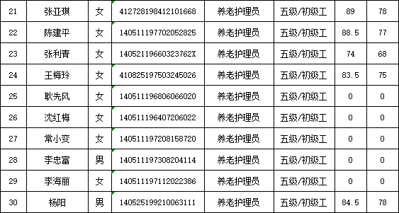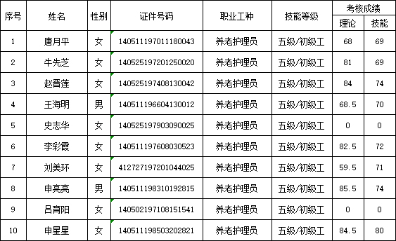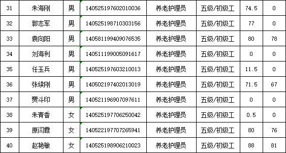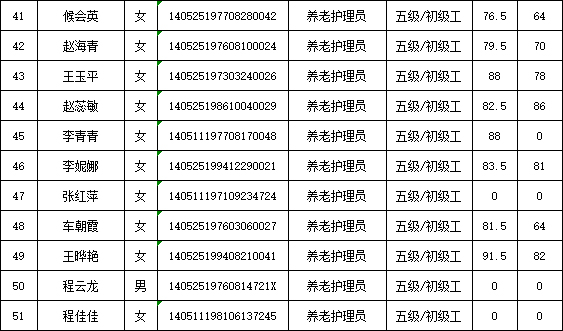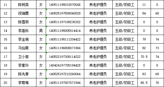 山西潔霸清潔服務集團股份有限公司職業(yè)技能等級認定中心2026年1月22日第1批養(yǎng)老護理員初級認定人員成績公示